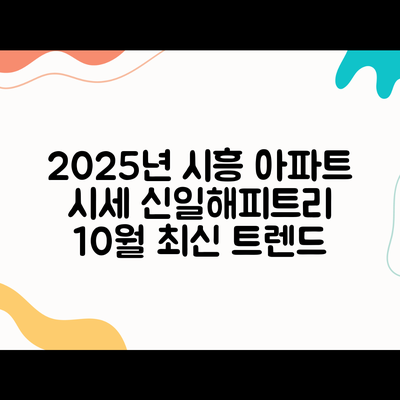 여러분, 부동산 시장의 변화를 고민할 때가 있죠? 경기도 시흥시 능곡동 신일해피트리 아파트의 2025년 10월 시세에 대한 이야기를 해볼게요. 현재 시장에서의 가격 변동이 내년에 어떤 영향을 줄지 살펴보는 건 정말 중요해요.