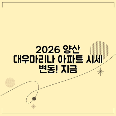 2026년 경상남도 양산시 상북면 대우마리나 아파트의 시세는 여러 요인에 의해 영향을 받을 것입니다. 특히, 지역 개발 계획, 인프라 확장, 그리고 주거 수요의 변화가 핵심 요소로 작용할 것입니다.