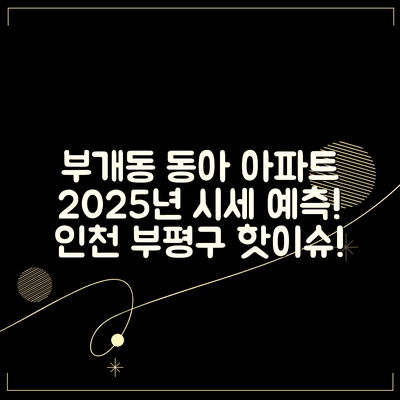 인천시 부평구 부개동 동아 아파트 2025년 10월 시세